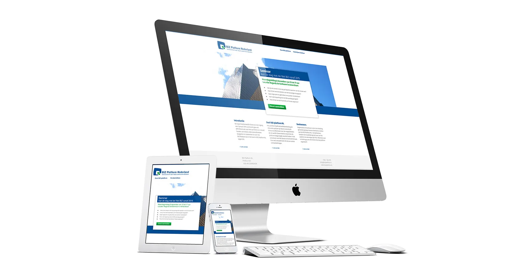 Op basis van het gemaakte logo is een website ontwerpen en gebouwd met een zakelijke en frisse uitstraling. De schaalbaarheid, dus de werking op alle devices, viel goed in de smaak bij BIZ-platform.